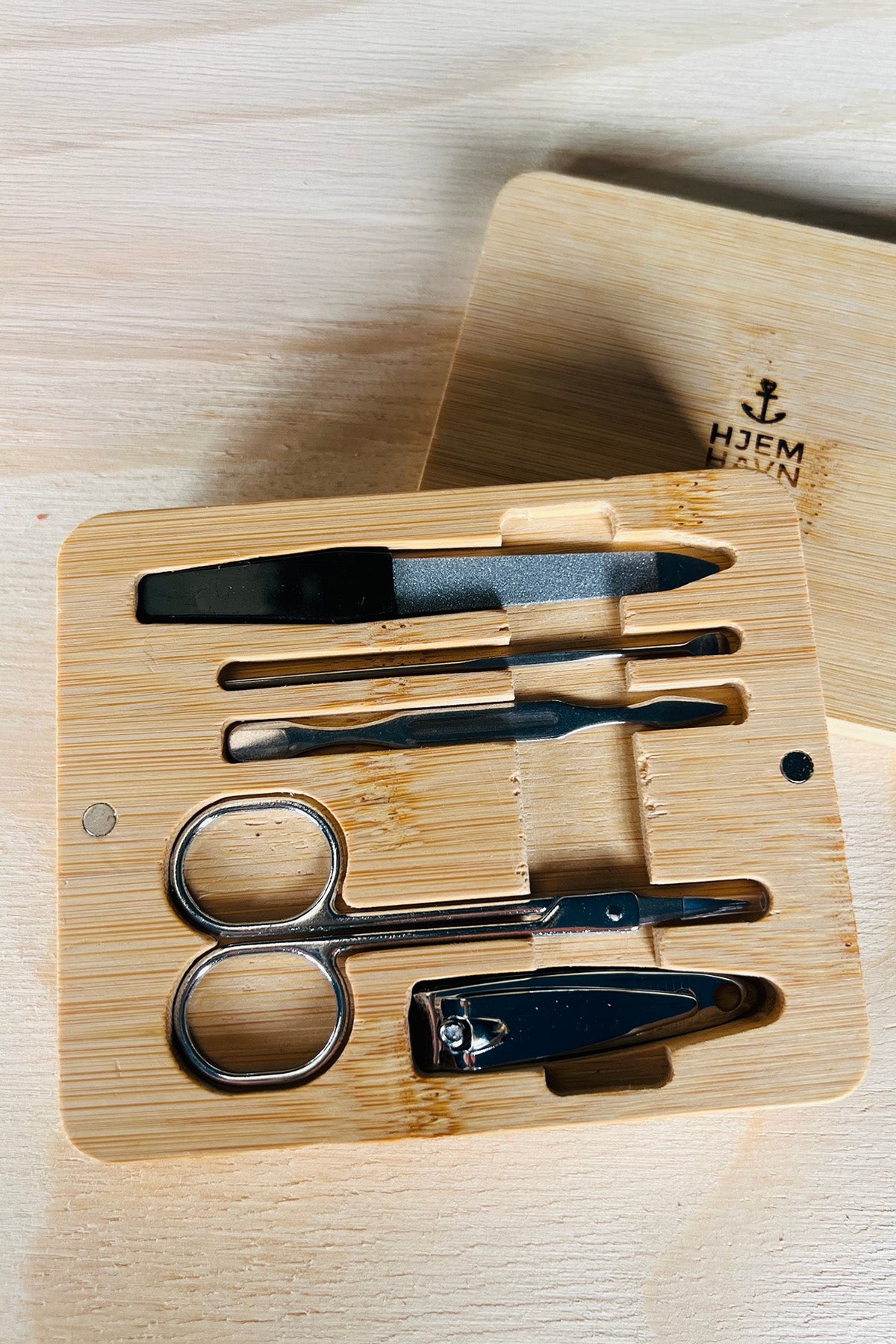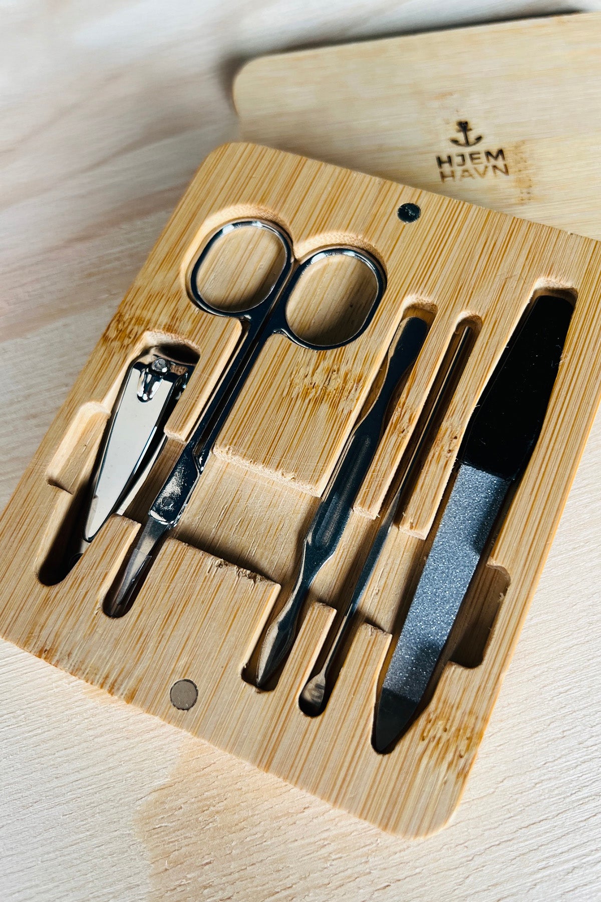 Manicuresættet indeholder en neglefil, neglesaks, negleklipper og en hud- og negleskubber. Alle værktøjer er lavet af materialer af høj kvalitet og tilbyder præcis og effektiv neglepleje. Sættet er kompakt og let, hvilket gør det ideelt til rejser eller hverdagsbrug.