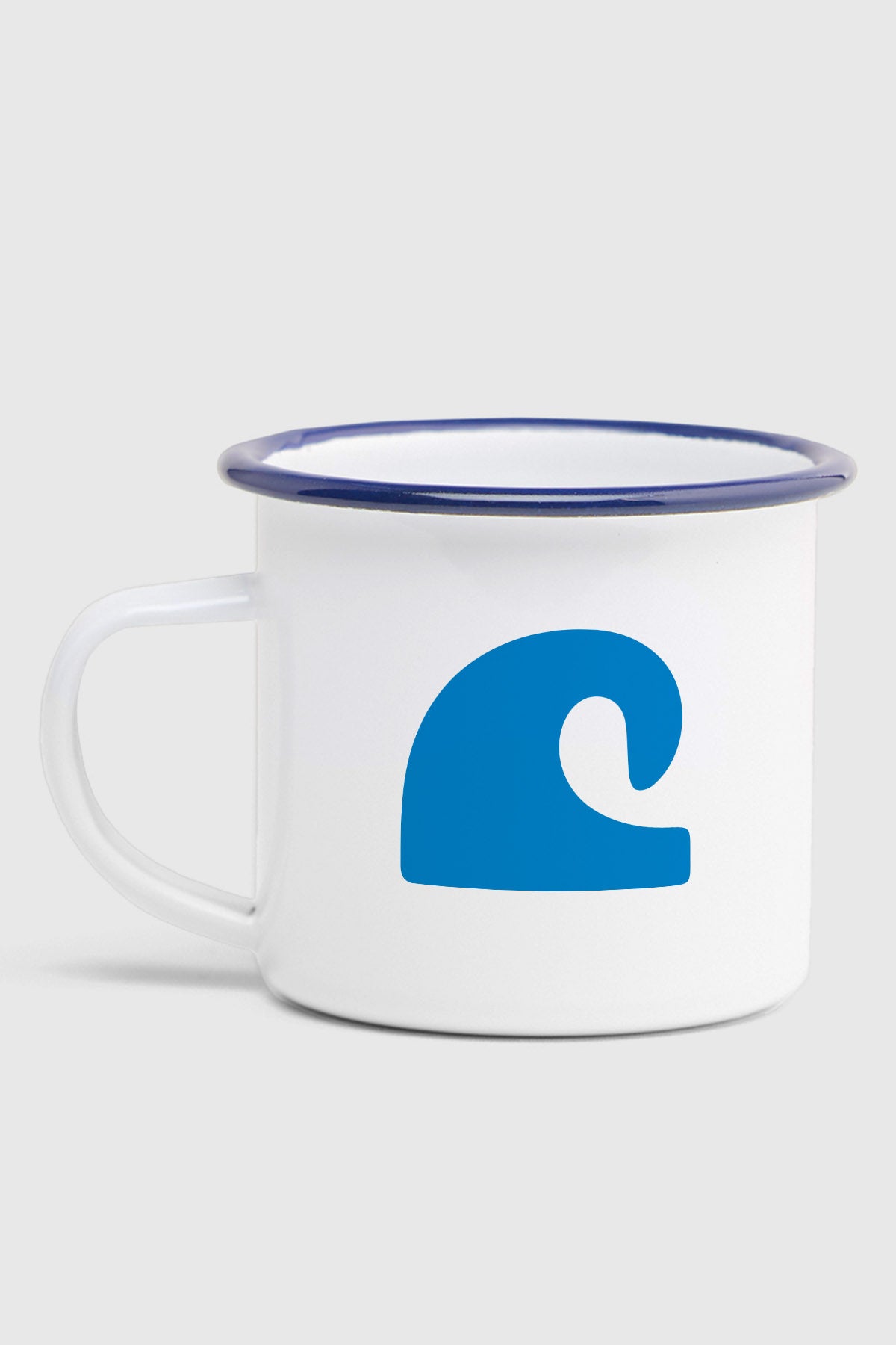 Klassisk hvidt emaljekrus (300 ml) med blå kant.