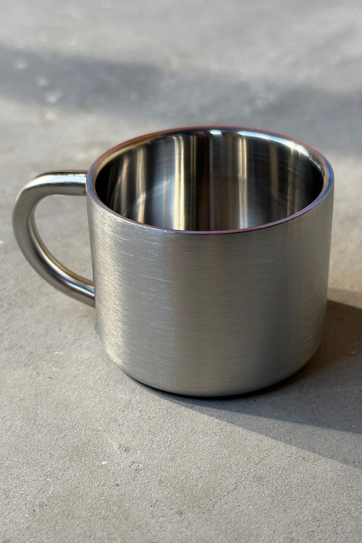 Espressokrus lavet af rustfrit stål, som er holdbart, rust- og brudsikkert. Den dobbeltvæggede konstruktion sikrer, at varme drikke forbliver varme, og kolde drikke forbliver kolde uden at opvarme eller dugge ydersiden af kruset.