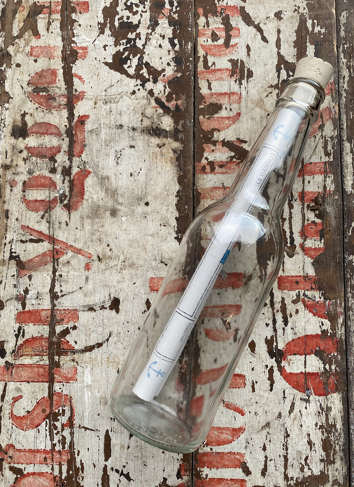 Vi sender dig (eller gavemodtageren) gavekortet i en klar glasflaske med korkprop, pakket ind i et paprør, så det når sikkert frem…