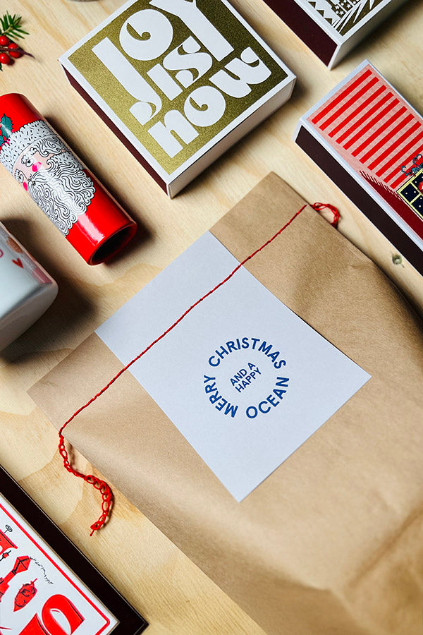 Anledningskort (vælg mellem): Mistelten (Jul´25) Merry Christmas and a Happy Ocean Flag(Redningsstation) Hjerte Striber (Badehotel) Søkort