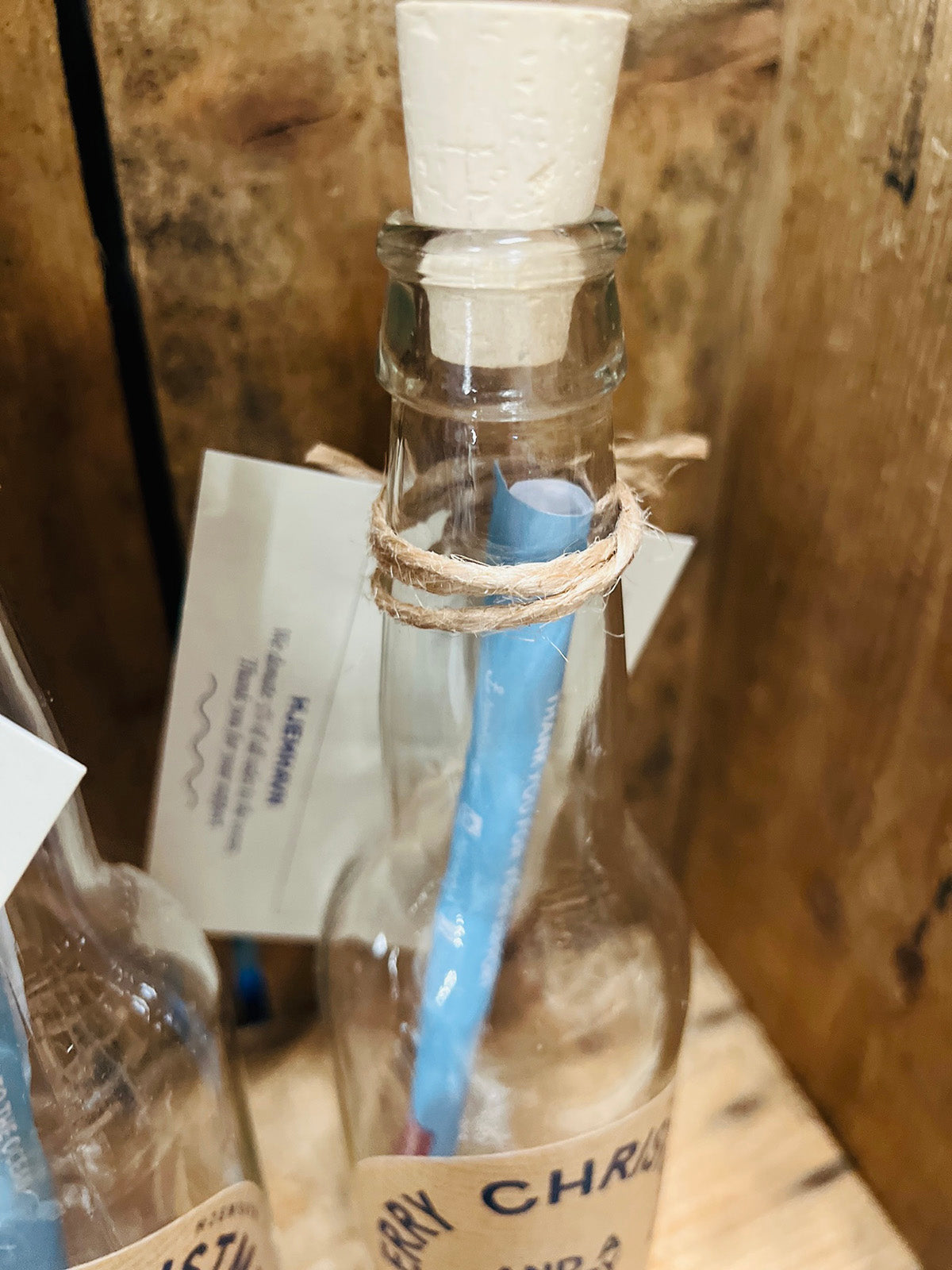 Vi sender dig (eller gavemodtageren) gavekortet i en klar glasflaske med korkprop, pakket ind i et paprør, så det når sikkert frem…
