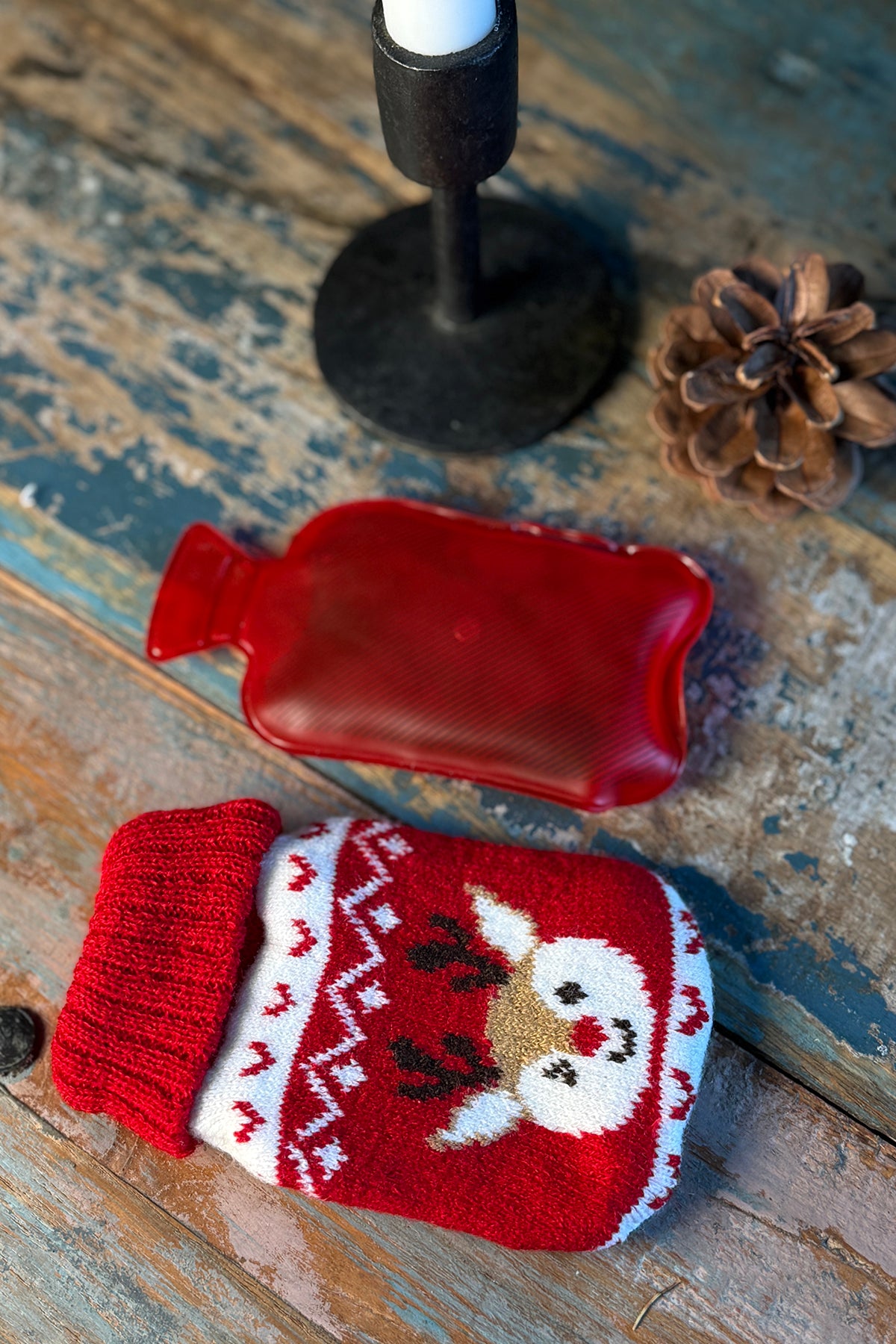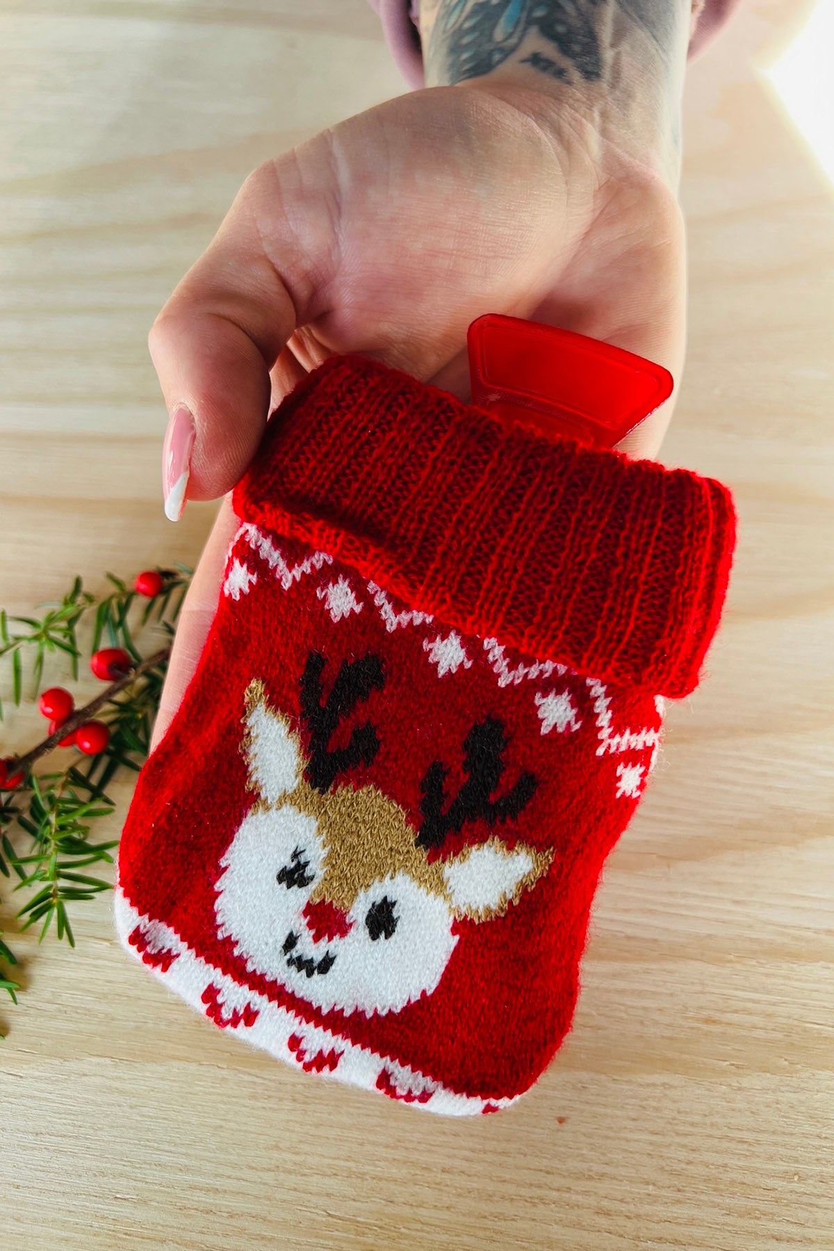 Håndvarmer med hyggeligt strikbetræk med julemotiv. Varmen udvikles ved blot at trykke på "metalknappen" inde i varmepuden og den holder dine hænder behageligt varme i ca. 30 min.