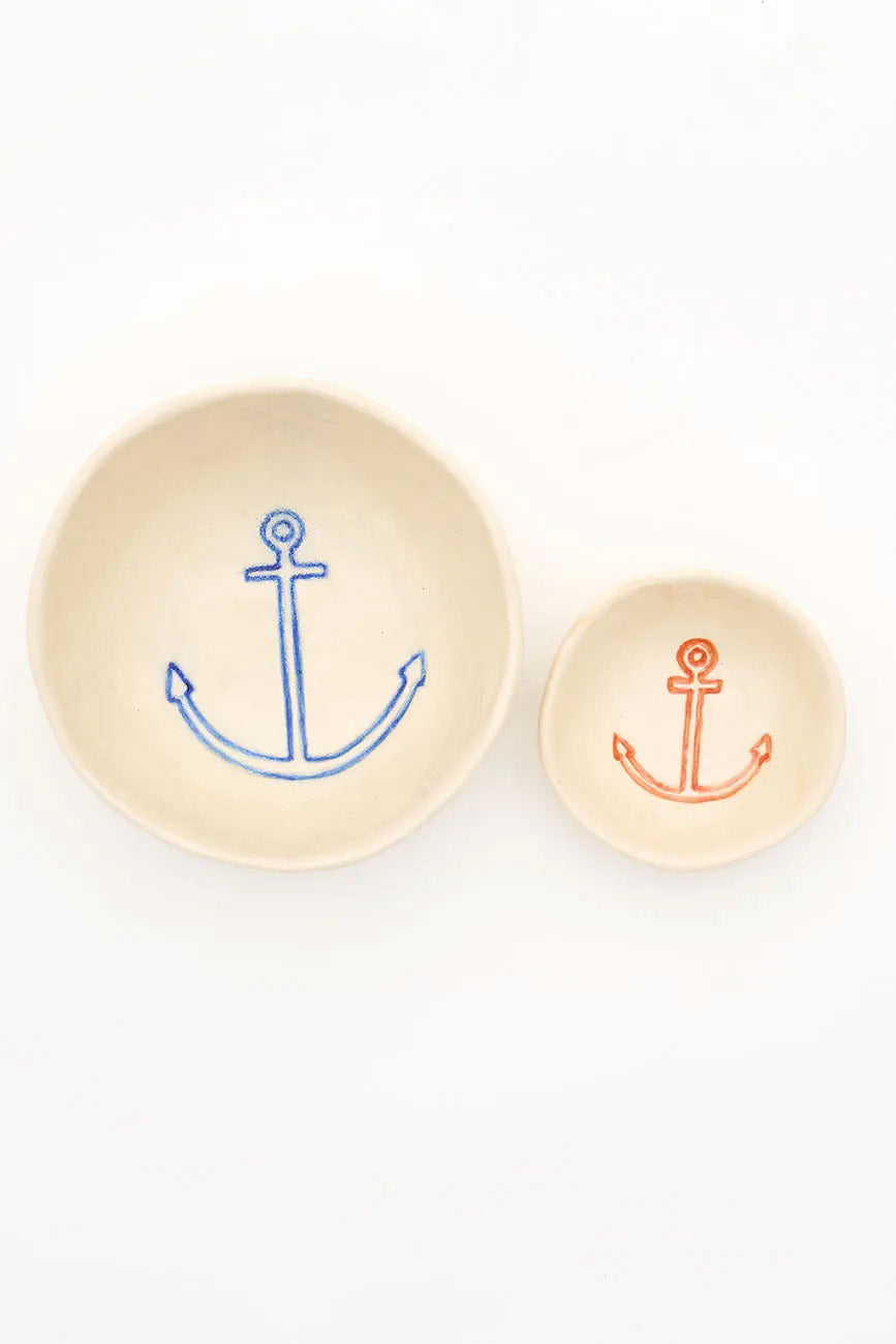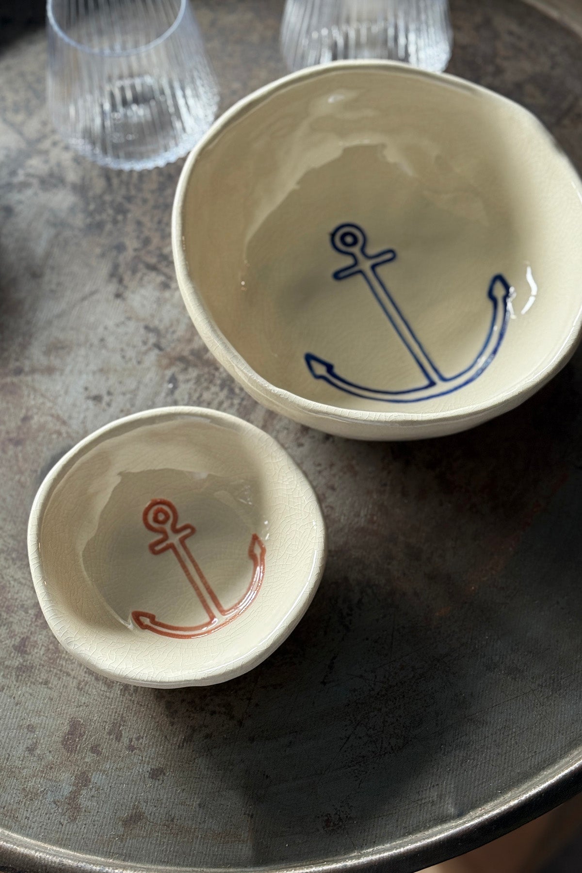 Smukke skåle i stentøj med et malet anker indeni.Fåes i to størrelser.Rødt anker: Ø: 12 CM - H: 4,5 CMBlåt anker: Ø: 20 CM - H: 8 CM