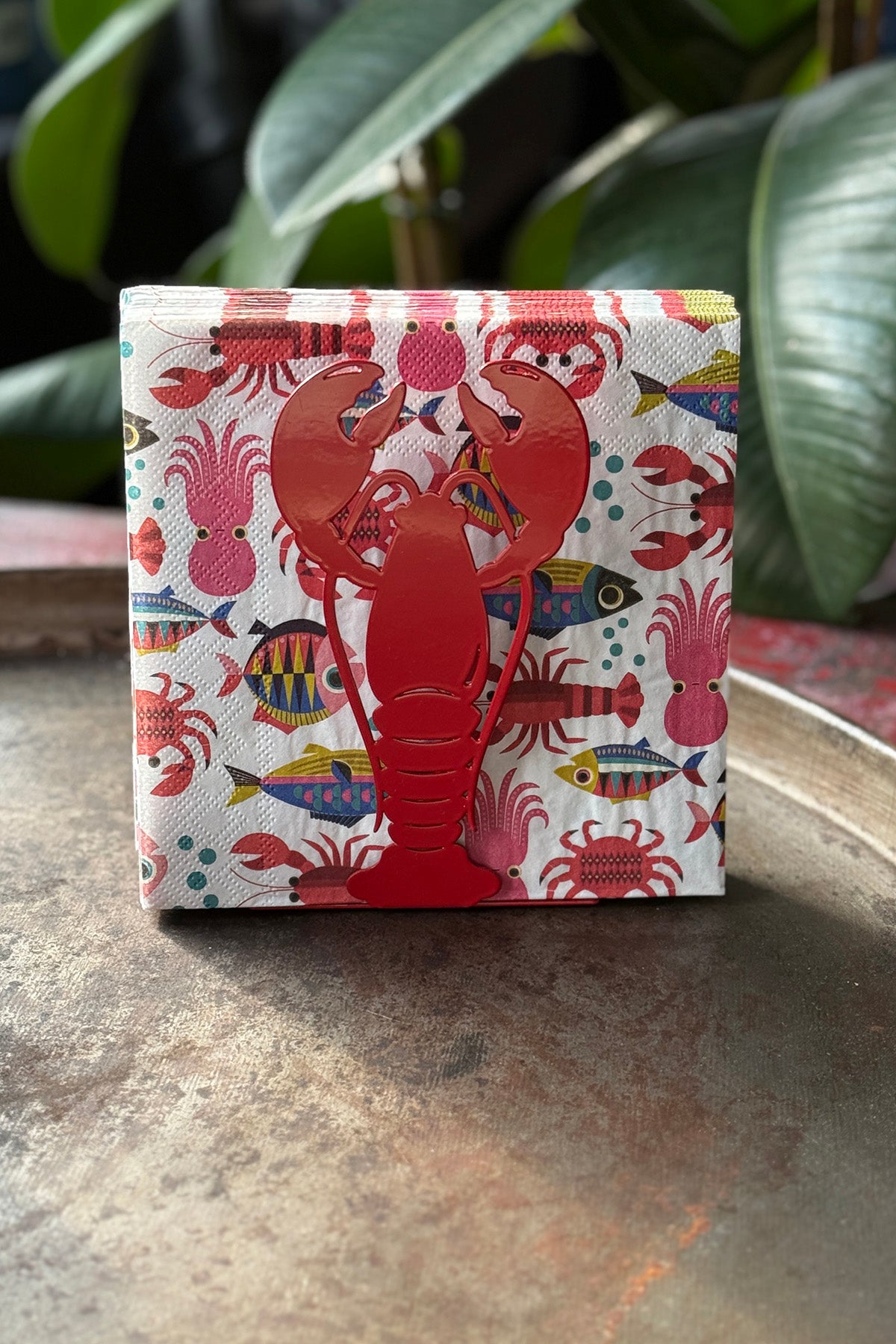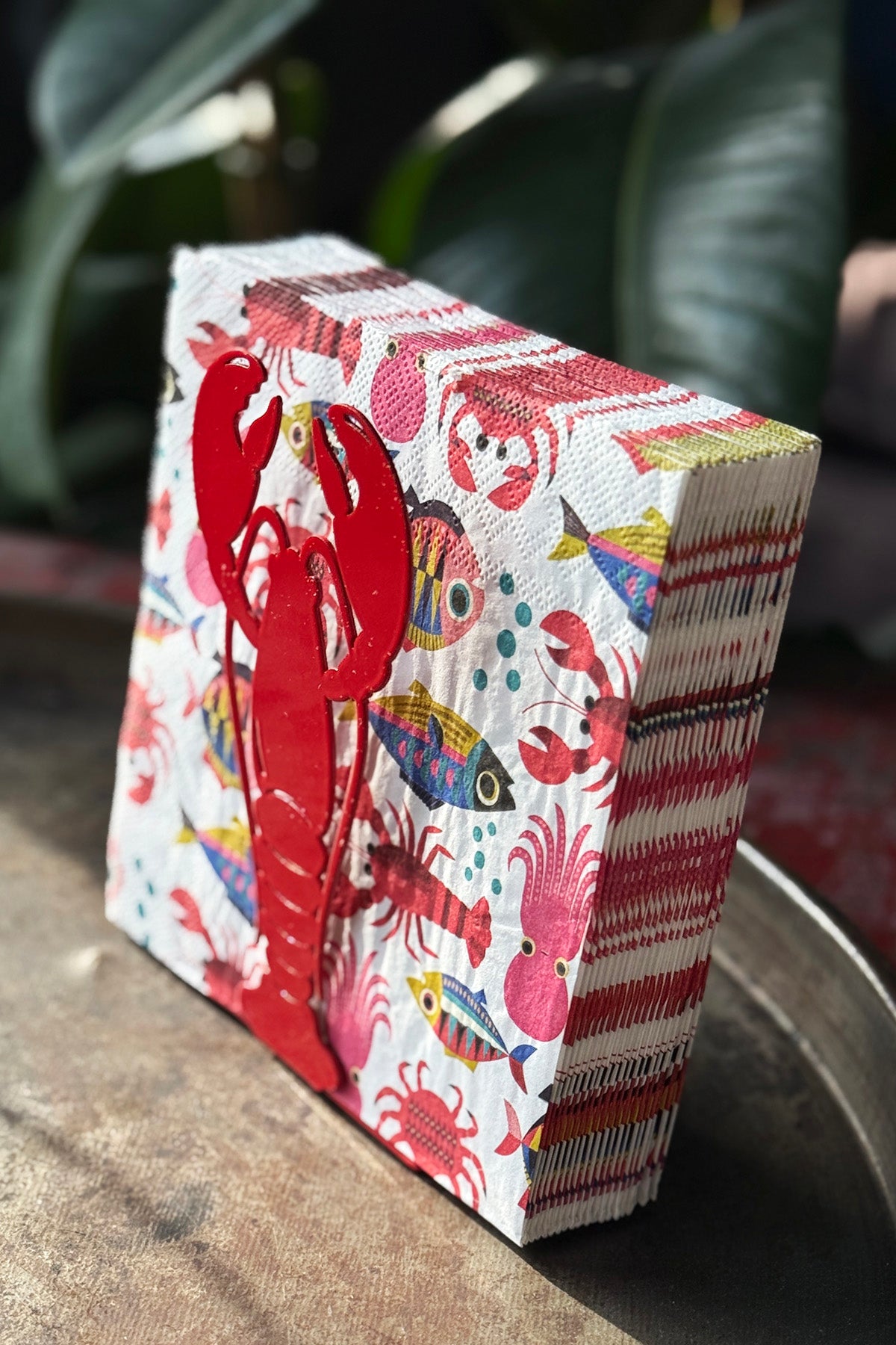 Servietholder i originalt hummerdesign. Rummer op til 30 papirservietter i alle størrelser (servietter medfølger ikke).Mål: 16x10x5,3 cm Materiale: metal