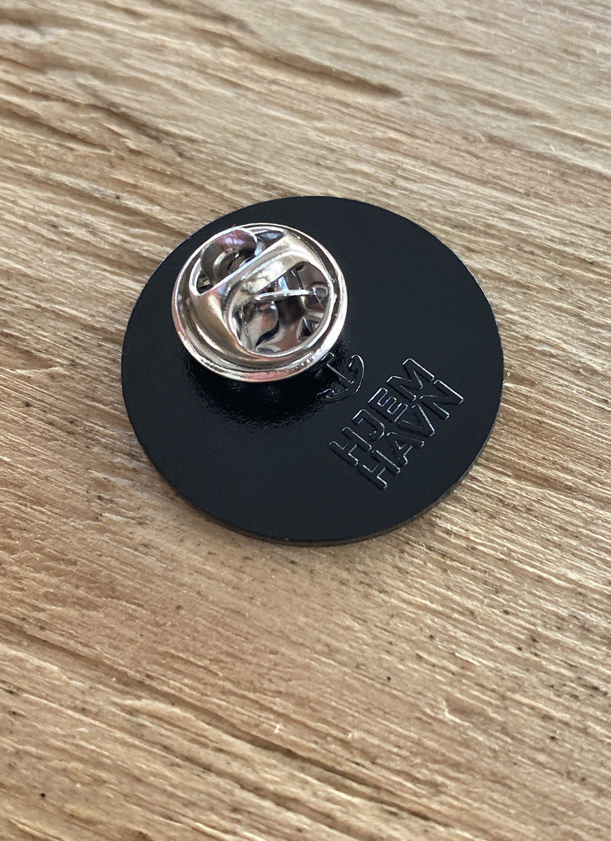 Størrelsen er Ø25 mm. Leveres på et postkort.