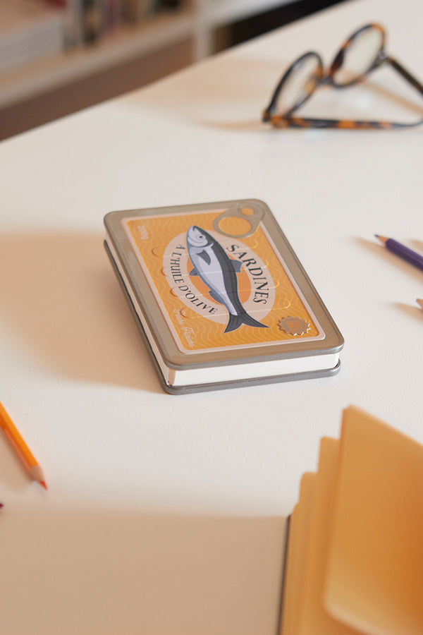 Unik notesbog formet som en vintage sardin dåse. Notesbogens omslag er lavet af metal med afrundede kanter i blikdåsestil og er bygget til at modstå daglig brug. Dine ideer og noter er velbevarede. Omslag med tekstureret finish og med fransk design/tekst. 160 sider (100 g/m²). Mål: 15x10x2 cm Materiale: metal/papir Designet af: Oscar Torrent