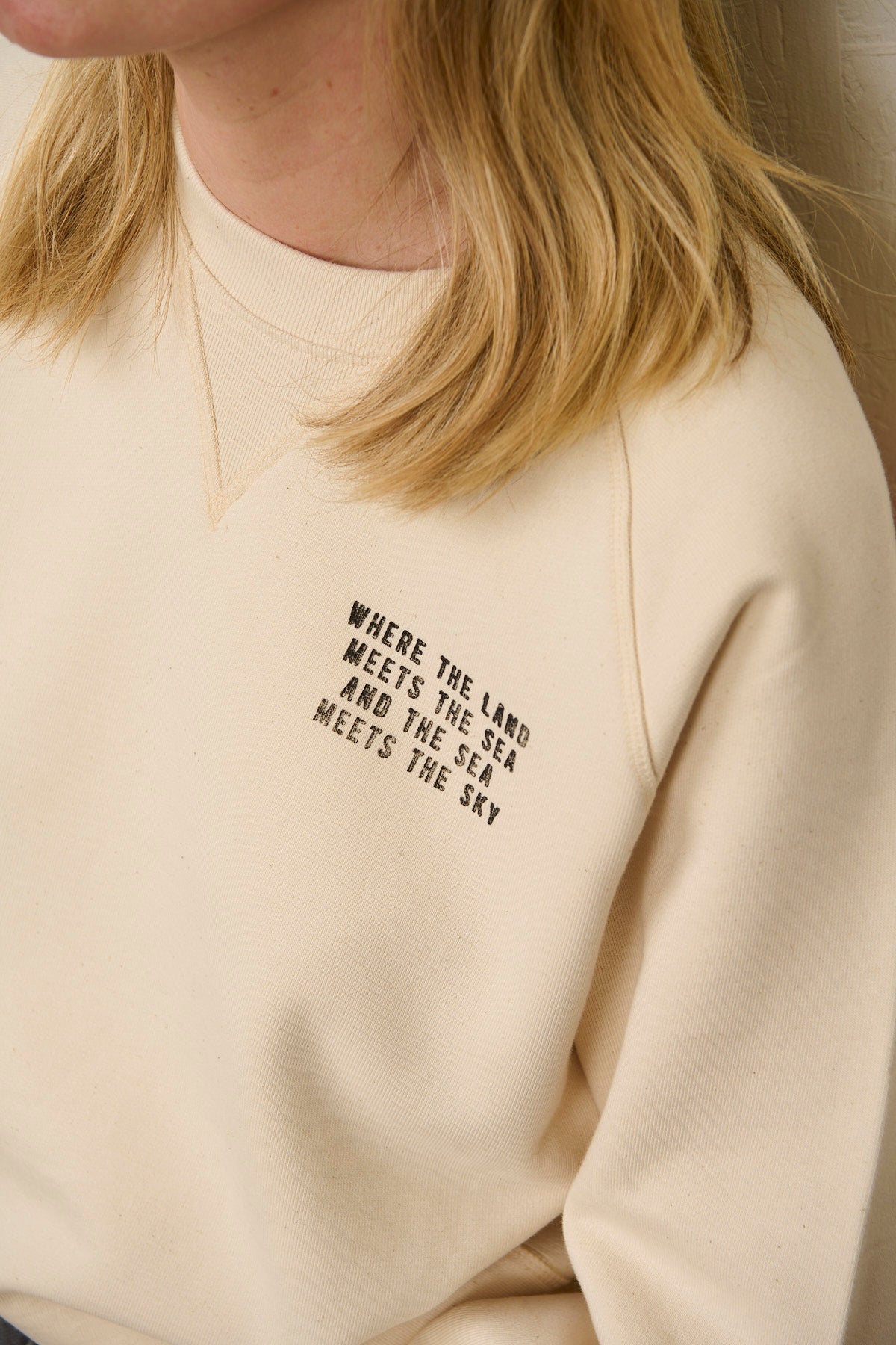 Denne shirt håndtrykker vi i vores værksted med store stempler (woodblock print). Det giver trøjerne en unikt stempeleffekt. Vi trykker med vandbaserede OEKO-Tex farver.