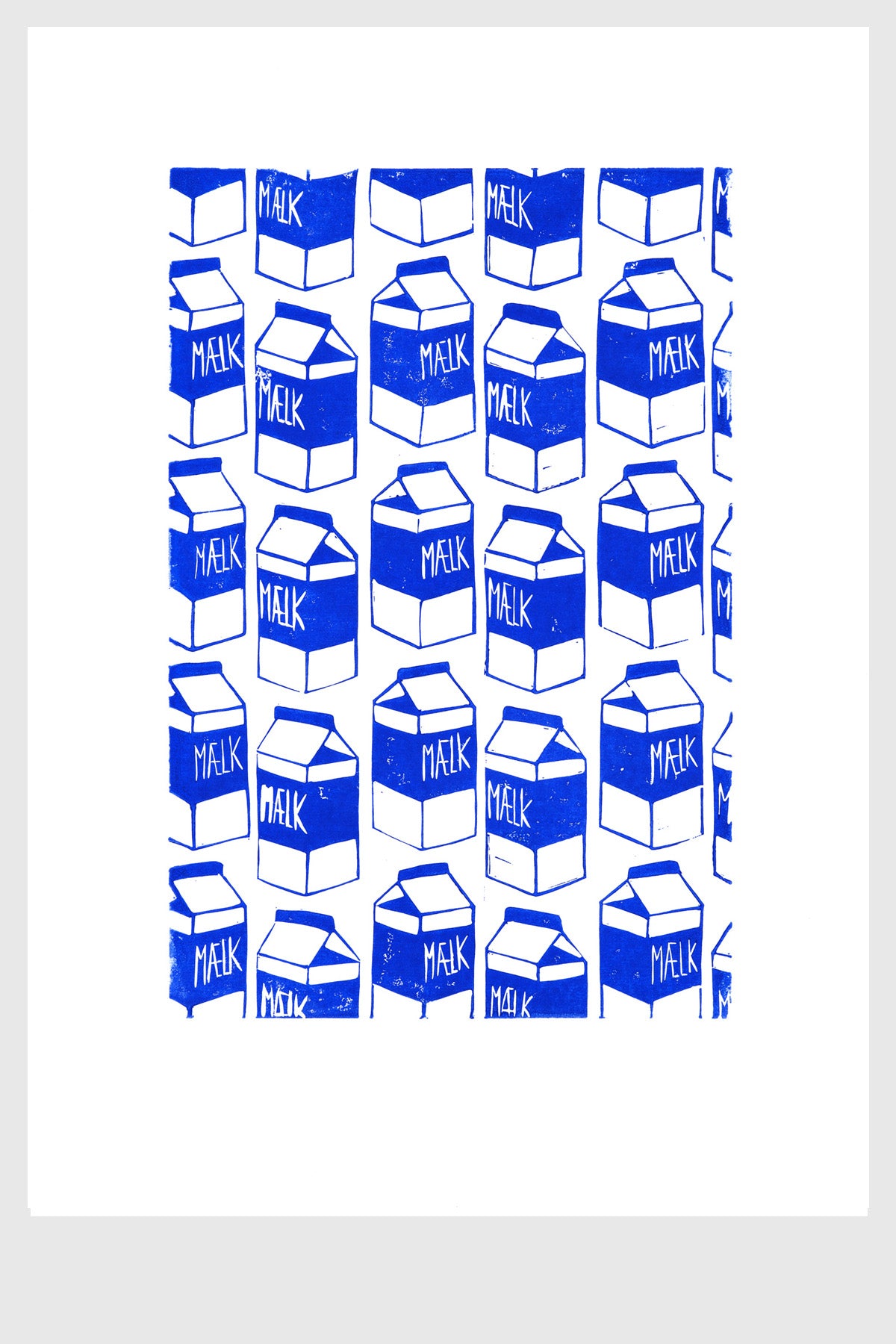 "Milch“ ist eine Reproduktion eines Linoleumdrucks von Joan Glintborg Vissing.