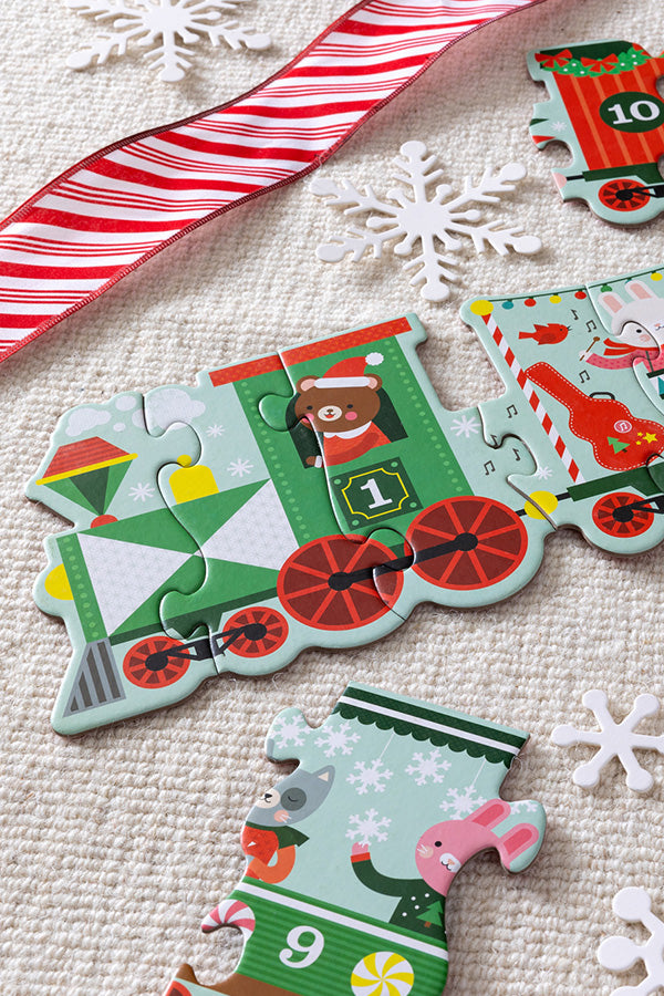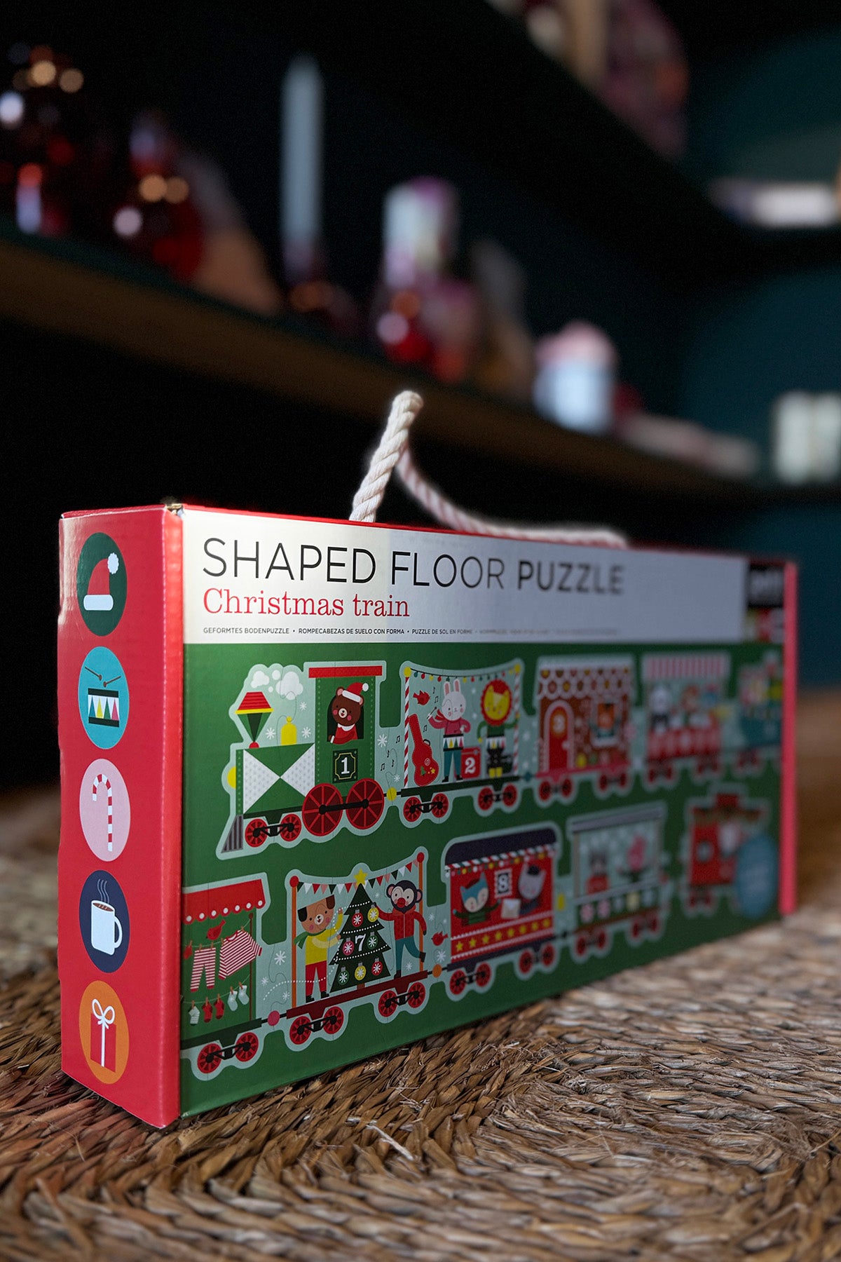 Det færdige gulvpuslespil måler 1,8 m langt og ser spektakulært ud foran dit juletræ. Dine dyrevenner er på vej hjem til jul og har en julestemning! Løven laver musik, tigeren deler slikstokke, og kattene færdiggør deres breve til julemanden. Forbind 30 store brikker for at fuldføre dette livlige lokomotiv, og søg, find og tæl de festlige godbidder i hver vogn! Skabt til alderen 3+, Lavet af 75% genbrugsmaterialer og FSC-papir trykt med vegetabilsk blæk.