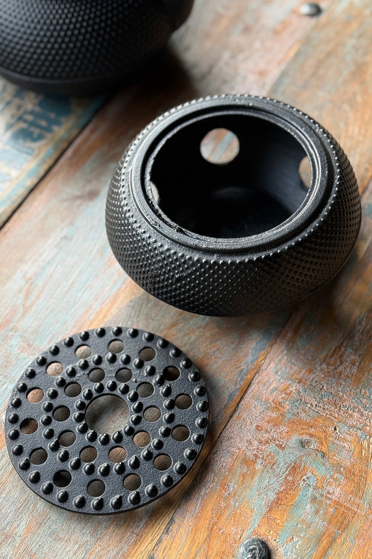 Klassisk tekande i støbejern med matchende varmer. Tekanden leveres med si, og varmholderen gør det muligt at holde teen varm ved hjælp af et fyrfadslys. Støbejernet sikrer god varmefordeling og lang varmebevaring – ideel til hyggelige testunder.